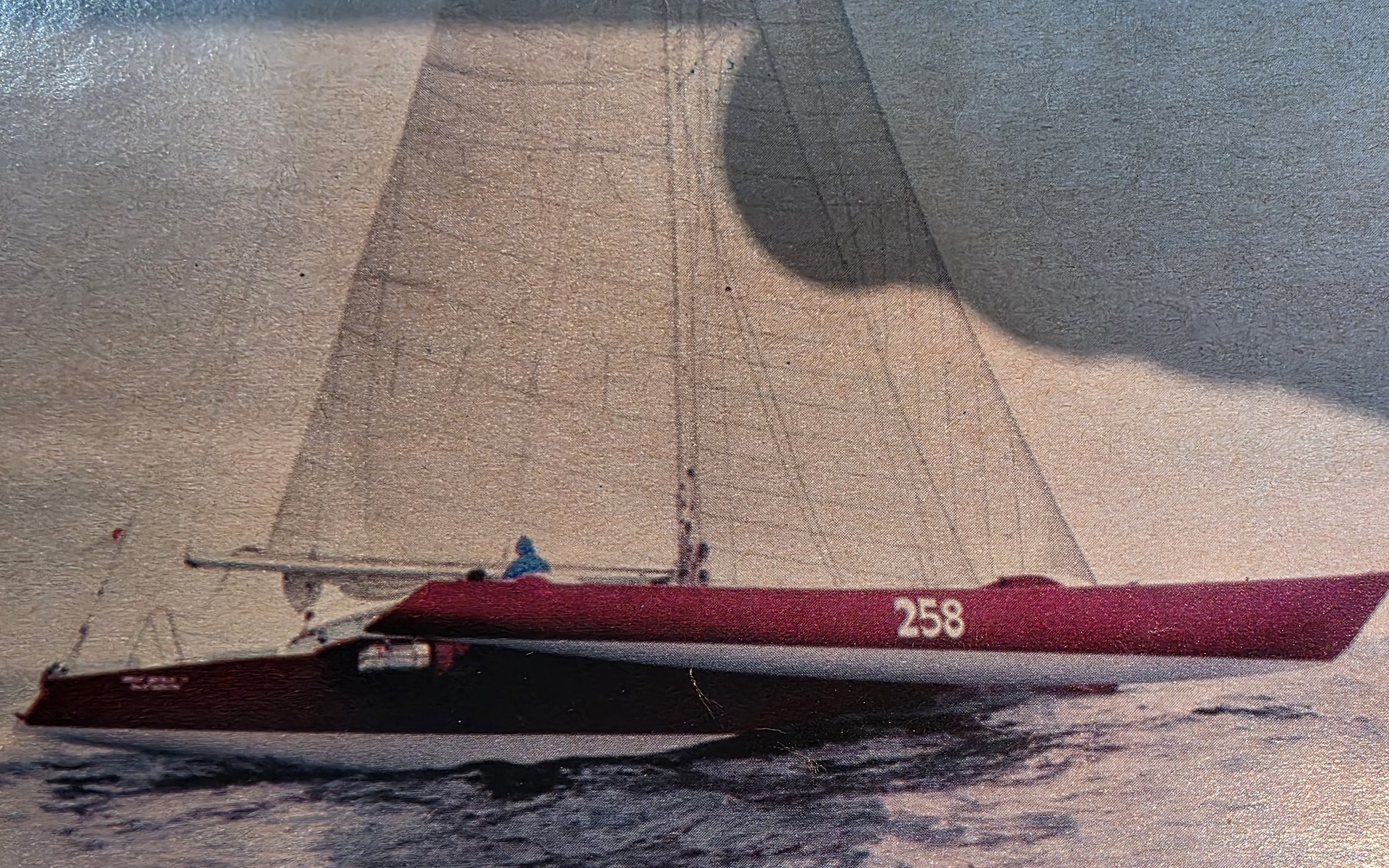 However Alan wrote that the sea anchor had ripped to shreds causing the boat to be driven backwards and hence to capsize. He said he would never again lie ahull or hove to in a trimaran and although the crew were rescued the yacht was destroyed. However, it must be said she was a success because she did exactly what she was designed to do by winning the 1978 RBR. Others subsequently involved with this boat reported that she was fragile and best in moderate and light weather. There is no doubt that Derek pushed boundaries with many of his boats. With Trumpeter for example in 1970 critics thought she was too lightly built however with modifications that Derek's experiments and lessons with design and construction development showed could improve her she is still sailing the Oceans 55 years later. She was built too lightly but she achieved what her owner had required namely to win the RBR 1978. Development of the same design further in VSD1 and 2 also showed that the basic design concept was good.