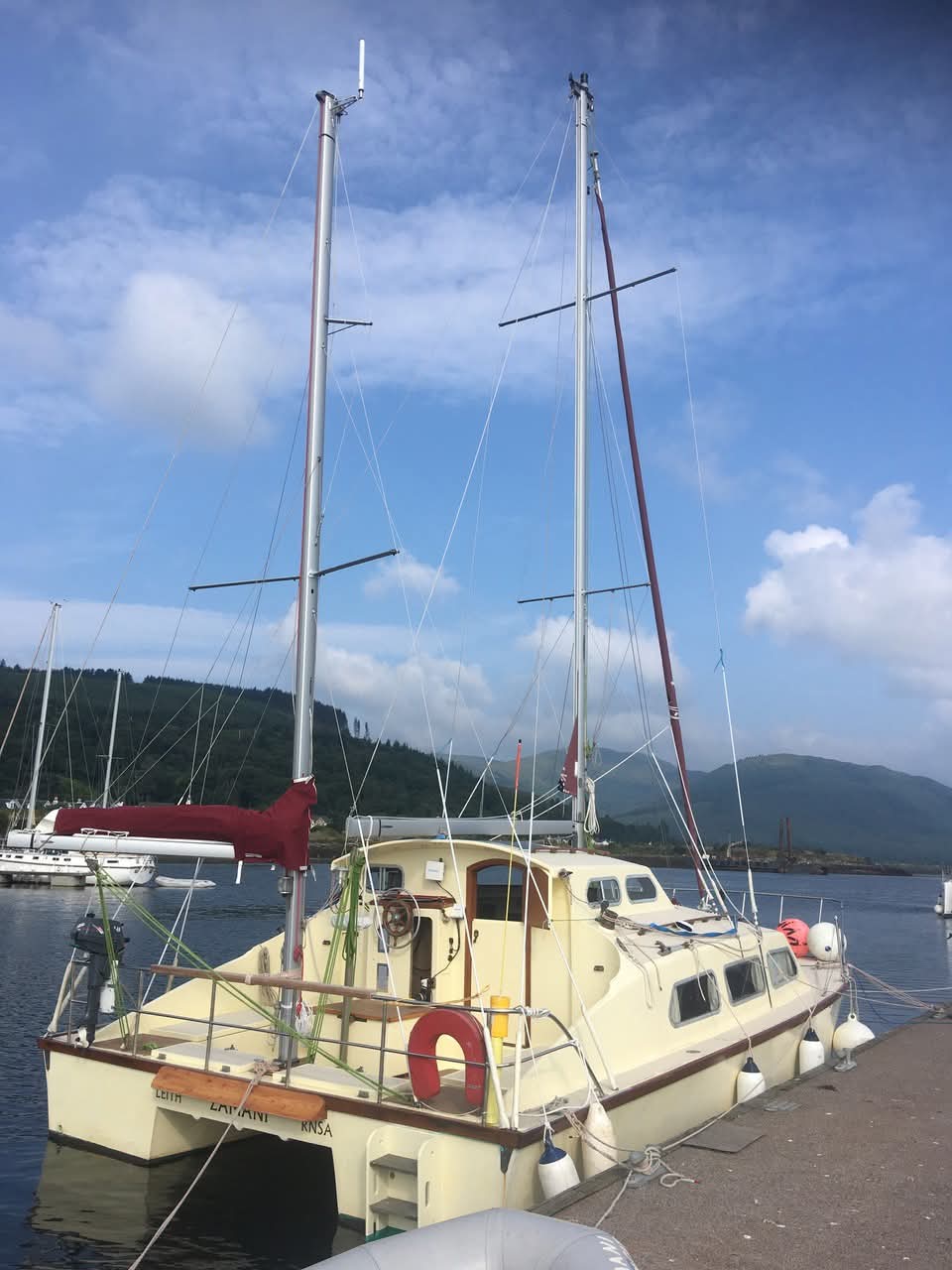 The grp Oceanic 30 foot motorsailer was a popular ocean voyager from Bill's board and one of his last designs was the Amazon also a grp catamaran. A version of this called the Channel Rover was designed to be self righting with a masthead float and a weighted keel under the bridgedeck. Many of Bill's designs sailed trans ocean. The Swale family sailed around the world via Cape Horn in their Oceanic Anneliese between 1971 and 1974. later Bill designed them a around the World racing catamaran called Granary Loafer. Rosie Swale (now famous as Rosie Pope-Swale - an adventurer and charity fund raiser) wrote a series of books about their adventures and bringing up very young children while sailing a catamaran around Cape Horn.